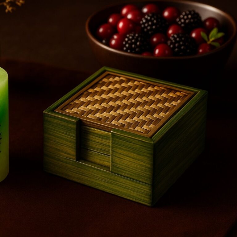 “SCORR EcoChoiceHub Eco-Friendly Woven Bamboo Craft Coaster Set “