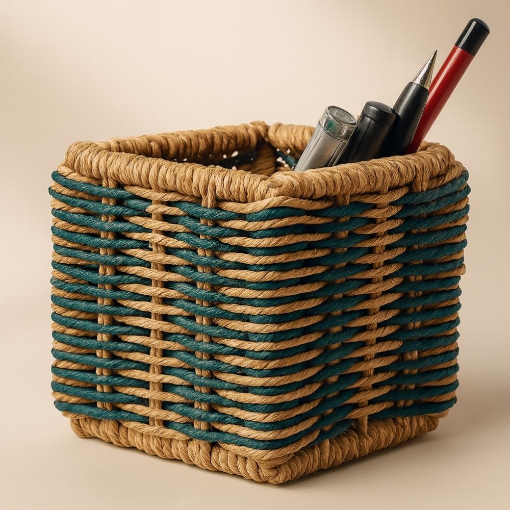 “SCORR EcoChoiceHub Eco-Friendly Classic Handcrafted Sabai Pen Stand with Sturdy Iron Frame “